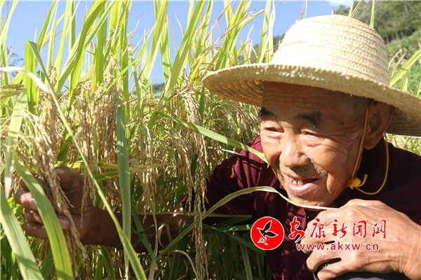 “稻花香里說(shuō)豐年”。桂花村2組許道生老人,今年雖已87歲高齡,卻精神矍鑠,常年為了家里 “一畝三分地”而辛勤勞作。78歲的老伴很是心疼,在照顧他生活起居的同時(shí),還關(guān)顧著孫子,膝下一兒兩女都忙各自的事,生活也很充實(shí)。面對(duì)豐收,老人喜不自禁,自述他種的兩畝水田保守估產(chǎn)將達(dá)3000多斤,用他的話說(shuō):“這可是我們嵐皋最好的米,過(guò)去還是貢米吶。”
