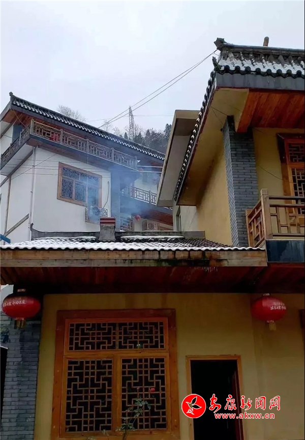 紅屋檐、紅格窗、紅木門、紅楹聯(lián)、紅地毯,還有那懸掛在屋頂上隨風(fēng)舞動(dòng)的紅燈籠,在瑟瑟寒風(fēng)和茫茫白雪中,才顯其妖嬈展姿。這里,是紅與白色澤、熱與冷色溫的匯聚。紅,是一枝梅,是數(shù)盞燈,是萬(wàn)家火,是山里人熱騰騰好日子的主色調(diào)……