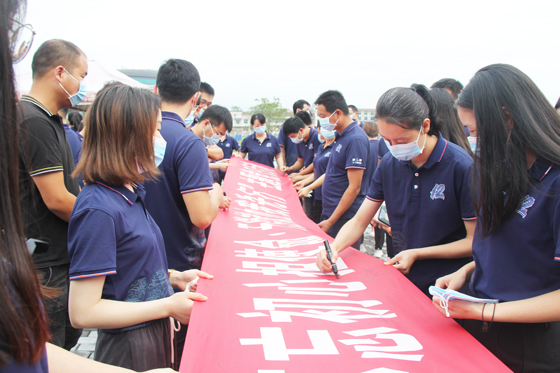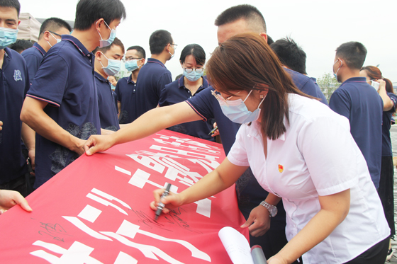 隨后現(xiàn)場職工還在無償獻血動員橫幅上集體簽名留念。