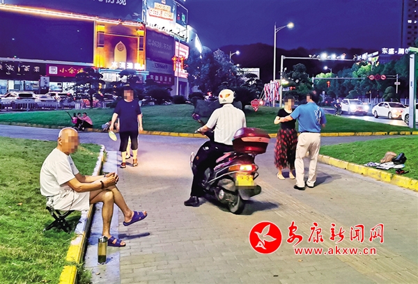 6月18日,有市民帶著孩子在安康城區(qū)西津漢江大橋(三橋)南頭街心綠地內(nèi)玩耍,旁邊就是“小草微微笑 請您旁邊繞”的公益廣告牌(圖1)。不時還有摩托車、電動車從人行道經(jīng)過(圖2),存在安全隱患。(記者 潘潤生 攝)