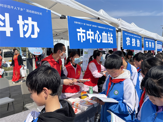 安康市中心血站參加安康市第三十一屆“科技之春”宣傳月暨“十團服務(wù)百村示范千人下鄉(xiāng)”活動啟動儀式
