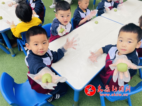 為了豐富課程資源,促進家園合作,在清明節(jié)來臨之際,安康高新幼兒園小五班開展了“濃濃節(jié)日情 巧手做青團”活動。(通訊員 潘健華)?