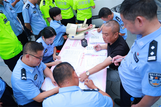 活動中,參加獻血的民輔警個個精神飽滿,熱情高漲,在醫(yī)務(wù)人員的指引下,逐一填寫獻血登記表,測量血壓、采血化驗,認真聆聽醫(yī)護人員講解獻血過程中應(yīng)該注意的事項,隨后依次排隊登車,挽起袖子伸出手臂無償獻血。
