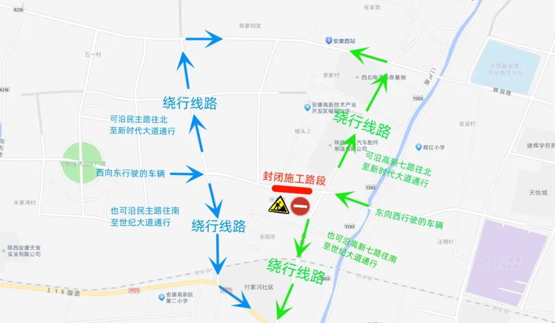 3.沿線車輛及行人可根據所行方向提前擇路繞行。