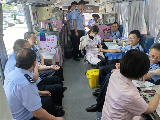 活動現(xiàn)場,參與獻血的公安干警們早早來到獻血點,在醫(yī)護人員的指導(dǎo)下,認真填寫獻血登記表,依次接受健康征詢、血液初篩檢查、現(xiàn)場采血等流程。鮮紅的熱血順著導(dǎo)管緩緩流出,匯聚成了一份份愛心,每個人的臉上都洋溢著堅定和自豪。