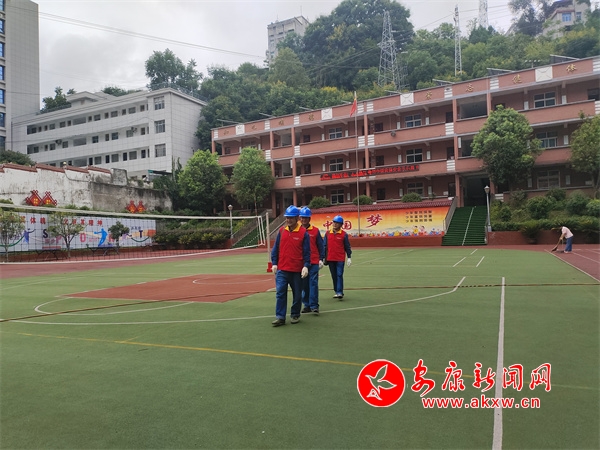 在白河縣冷水鎮(zhèn)中心小學(xué),工作人員仔細(xì)檢查校園用電設(shè)備情況,由于暑假期間學(xué)校用電設(shè)施大多處于閑置負(fù)荷狀態(tài),加上高溫、暴雨等天氣影響,存在諸多安全用電隱患。工作人員重點(diǎn)對(duì)教室、辦公室、食堂等場(chǎng)所的供電設(shè)備進(jìn)行“把脈問(wèn)診”,并對(duì)這些區(qū)域的開關(guān)插座進(jìn)行試用,確保用電無(wú)憂。
