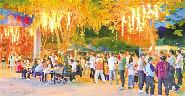 舞臺(tái)旁的燒烤美食區(qū),秘制烤肉與本地山珍食材散發(fā)著誘人香氣,游客們圍坐一起,吃著燒烤、聽著音樂、吹著涼風(fēng),盡情享受假日的愜意。演出間隙的套圈、有獎(jiǎng)問答、音樂接龍、民宿推介等互動(dòng)環(huán)節(jié),更是讓游客熱情高漲,現(xiàn)場歡聲笑語不斷。