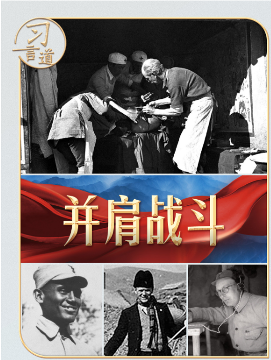 印度醫(yī)生柯棣華、法國醫(yī)生貝熙葉、德國人約翰·拉貝、丹麥人辛德貝格、英國人林邁可、國際主義戰(zhàn)士漢斯·希伯、蘇聯(lián)飛行大隊(duì)長庫里申科、美國“飛虎隊(duì)”......他們的事跡,習(xí)近平總書記曾多次動(dòng)情講述??倳涍€在國內(nèi)外重要場合為曾幫助和支持中國抗戰(zhàn)的國際友人頒獎(jiǎng),向他們致敬。