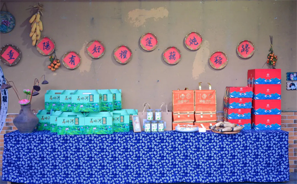 此外,活動現(xiàn)場精心打造了“重陽有好禮,蓮藕燉豬蹄”網(wǎng)紅墻,成為參會人員打卡留戀的熱門地點(diǎn);同時,設(shè)置了農(nóng)副產(chǎn)品展銷區(qū),集中呈現(xiàn)紫陽蒸盆子、蒿坪河蓮藕、紫陽荷葉茶、蓮藕燉豬蹄等特色農(nóng)副產(chǎn)品。值得關(guān)注的是,硒園農(nóng)莊此次首次推出“蒿坪河蓮藕燉豬蹄”伴手禮盒,分為“四至五人份”和“八至十人份”兩種規(guī)格,于重陽節(jié)前夕上市。該禮盒將堂食菜品轉(zhuǎn)化為便攜商品,為當(dāng)?shù)厣徟轰N售拓展了新渠道,也為蓮藕產(chǎn)業(yè)鏈延伸做了初步嘗試。
