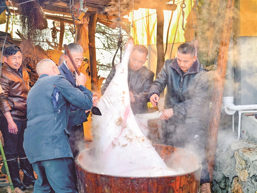 年豬肥碩,庖湯飄香。庖湯宴這一傳統(tǒng)習(xí)俗不僅凝聚著鄰里親情,更映照出當(dāng)代農(nóng)民扎根鄉(xiāng)土、勤勞致富的生動(dòng)圖景。在鄉(xiāng)村振興政策的支持下,越來越多像代明清一樣的村民,正通過自己的雙手創(chuàng)造更踏實(shí)、更紅火、更幸福的生活。