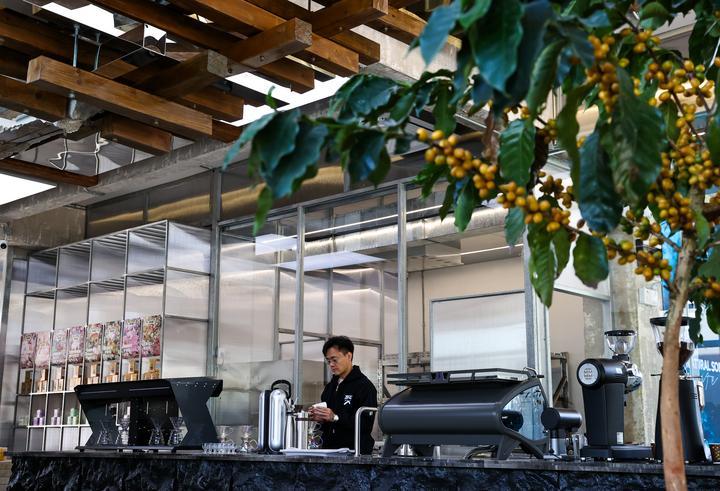 2025年12月10日,旅居云南的韓君瑋在位于昆明的南來盛咖啡店內(nèi)制作咖啡。韓君瑋自清華大學畢業(yè)后,已在咖啡行業(yè)耕耘十余年。2024年,他受聘成為云南一家老字號咖啡品牌的品牌總顧問,從此投身到云南咖啡的產(chǎn)品研發(fā)和品牌推廣工作中。一年多來,他每月都會來到昆明,短則幾天,長則數(shù)周,開啟了一種“半旅居、半工作”的生活模式?!霸颇巷L景優(yōu)美、氣候宜人,我很享受這樣的狀態(tài)?!表n君瑋說。
