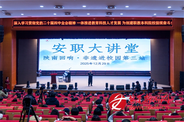 這是“安職大講堂”首期活動(dòng)現(xiàn)場(chǎng)。一場(chǎng)以“陜南回響”為主題的音樂(lè)課,正在這所地方高職院校里,探索職業(yè)教育與文化傳承的深度交融。