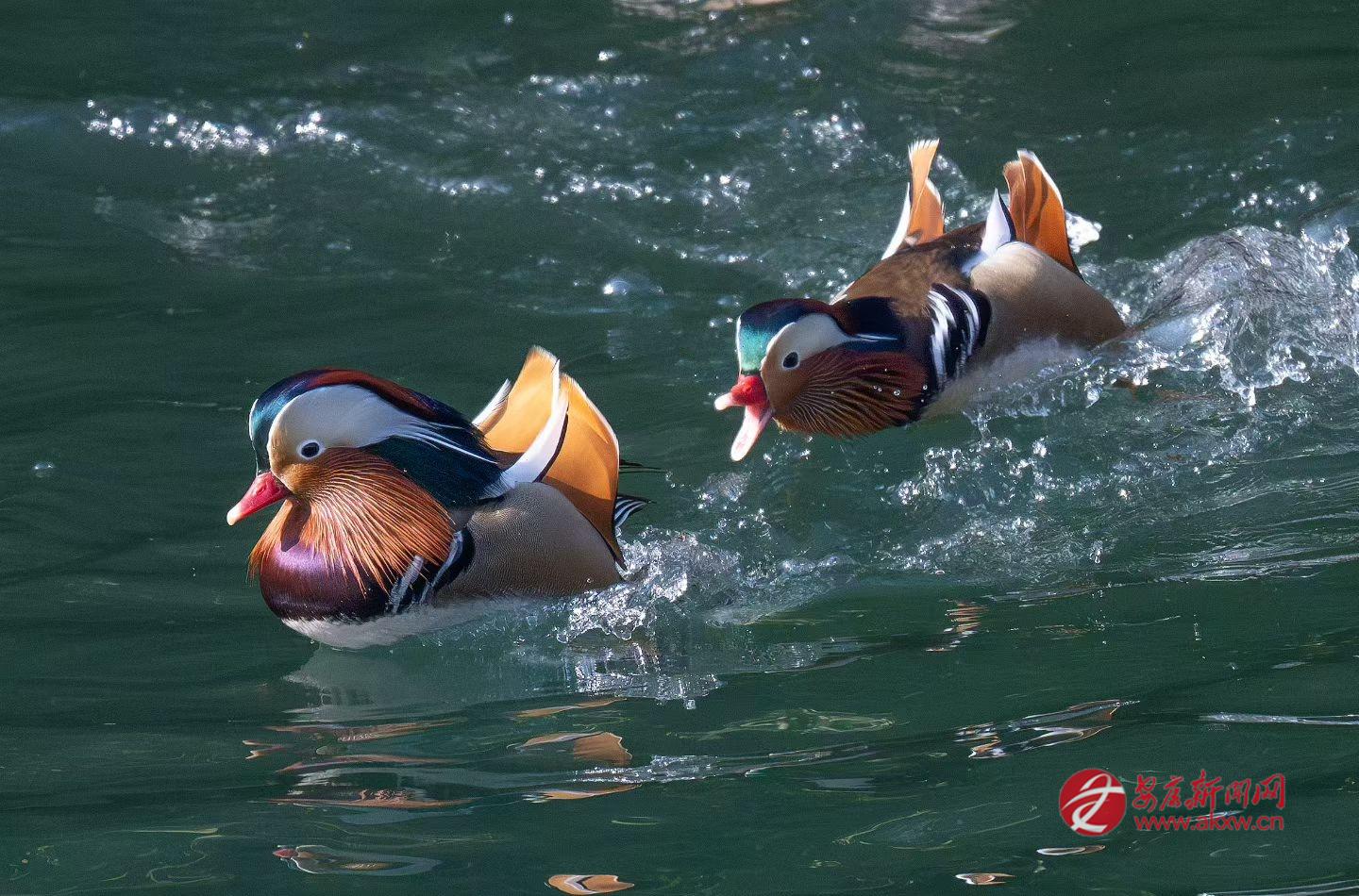 暖陽(yáng)下,鴛鴦三五成群,在水庫(kù)里游來(lái)游去,時(shí)而嬉鬧戲水,時(shí)而將頭探入水中啄食小魚(yú),靈動(dòng)的身影在水面漾開(kāi)層層漣漪。