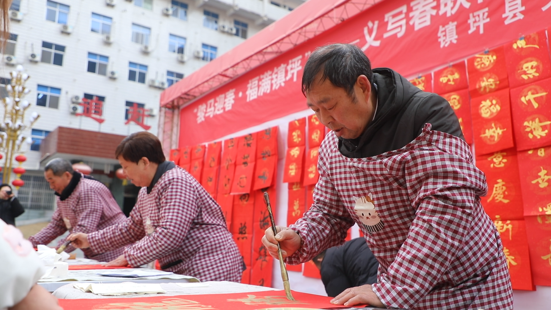2月2日,鎮(zhèn)坪縣文化館組織開展“駿馬迎春·福滿鎮(zhèn)坪——義寫春聯(lián)福送萬家”主題活動。 屈光波 攝