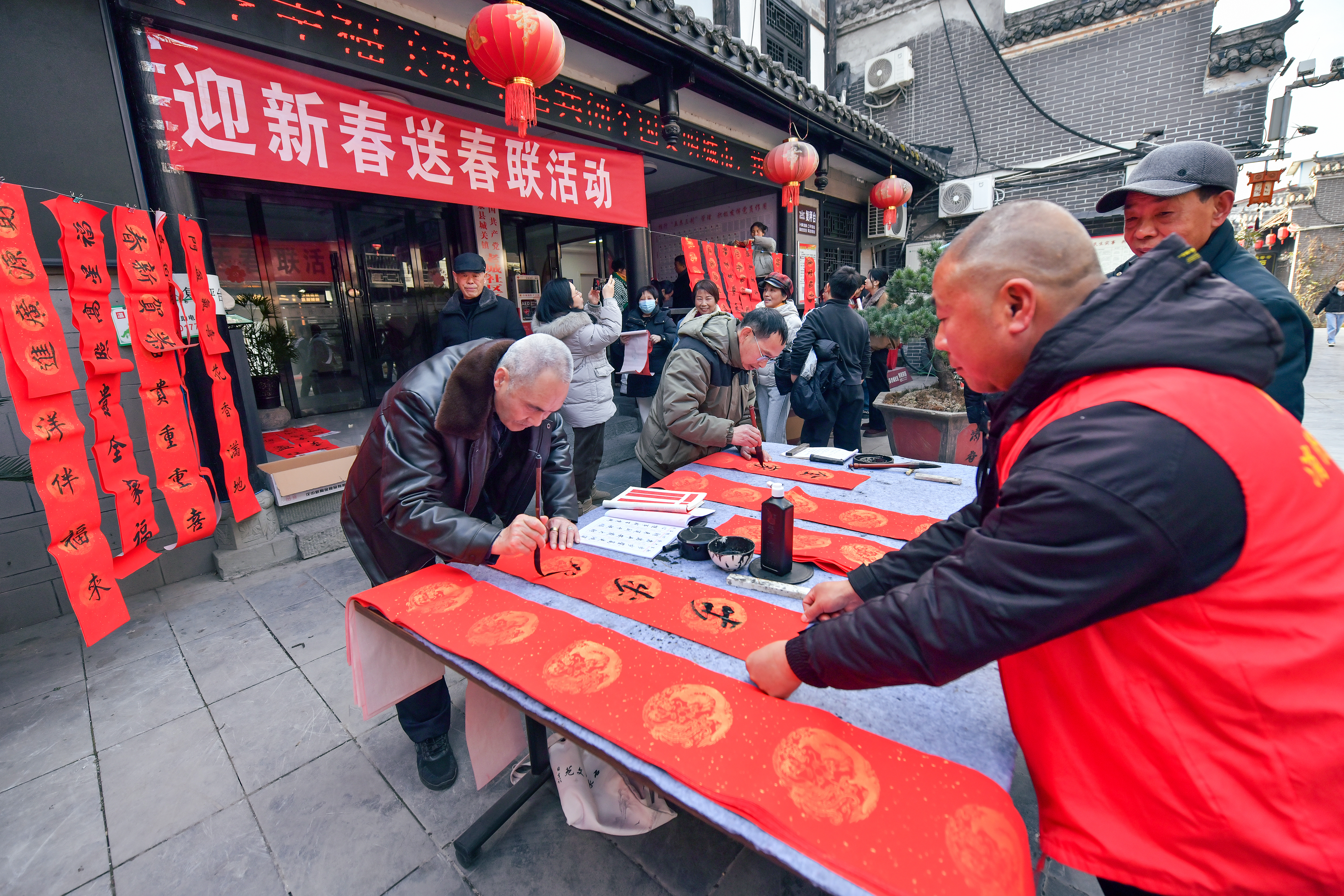 2月2日,石泉縣城關(guān)鎮(zhèn)老城社區(qū)新時代文明實踐站組織開展義寫春聯(lián)活動。書法愛好者現(xiàn)場揮毫,為居民送上新春祝福?;顒庸菜统龃郝?lián)200余副。董長松 攝