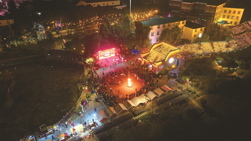 夜晚的龍頭村篝火晚會。 王韜 攝