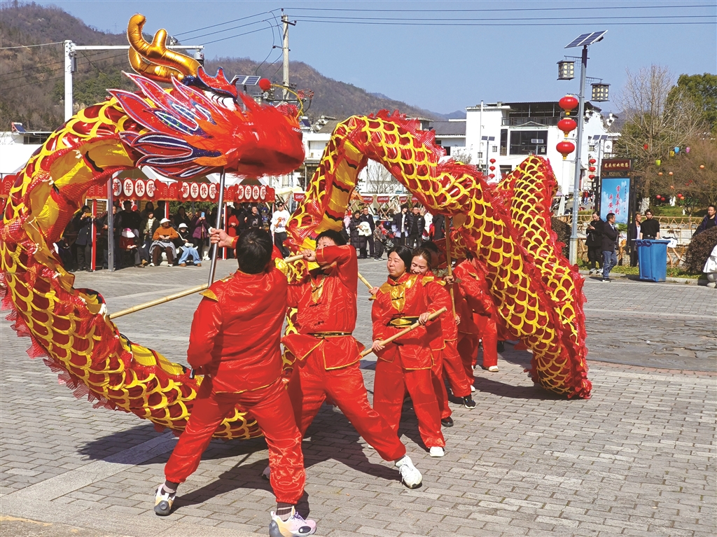 此次龍頭村春節(jié)活動,不僅延續(xù)了“八大件年夜飯”等傳統(tǒng)習俗,更通過農(nóng)文旅融合創(chuàng)新,讓非遺“活起來”、鄉(xiāng)村“旺起來”。王韜 攝