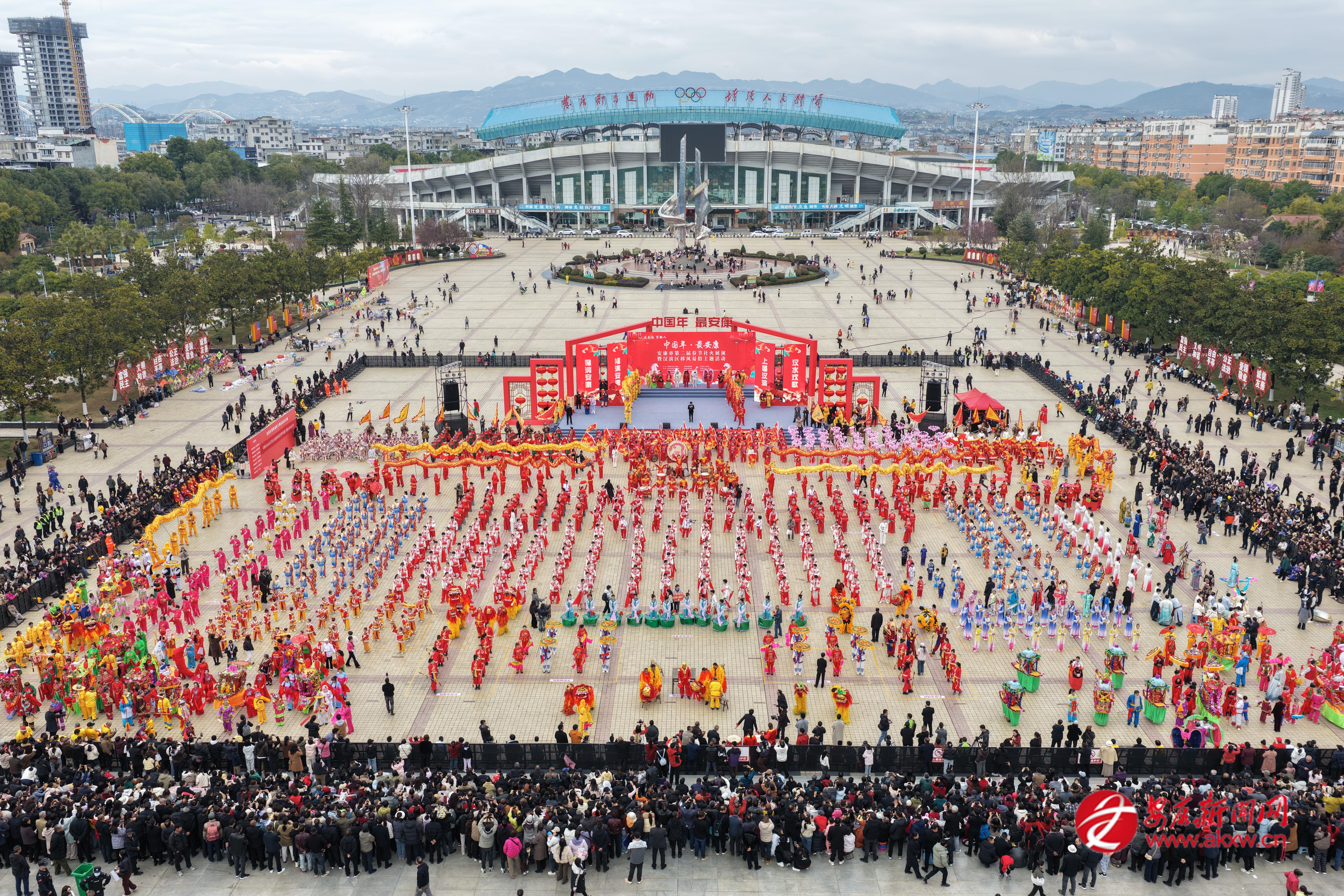 “中國年·最安康”安康市第二屆春節(jié)社火展演暨漢濱區(qū)移風易俗主題活動自2月27日一直持續(xù)至3月3日。圖為活動啟動現(xiàn)場金州廣場熱鬧非凡。 唐軍 攝