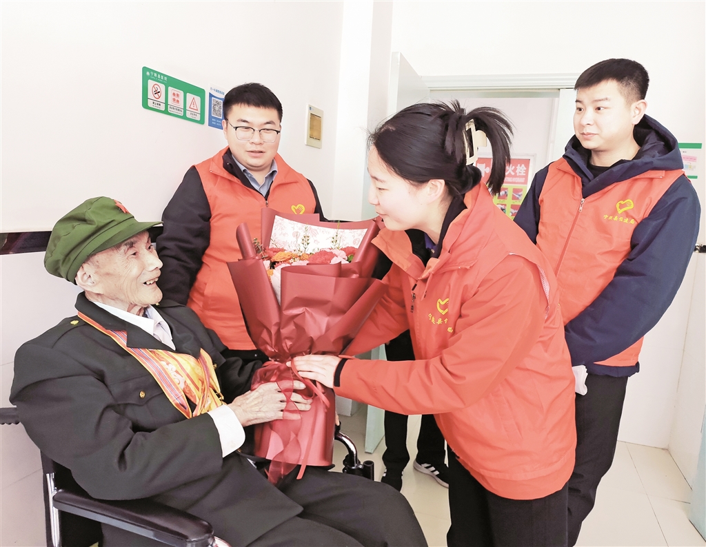 活動(dòng)現(xiàn)場(chǎng)暖意融融,志愿者圍在老人身邊,促膝長(zhǎng)談、噓寒問(wèn)暖,細(xì)心詢(xún)問(wèn)其飲食起居和身體狀況,認(rèn)真傾聽(tīng)那段浴血奮戰(zhàn)的革命故事?!袄先孙嬍城宓?,精神狀態(tài)一直很好?!弊o(hù)理人員李娟介紹,老人性格開(kāi)朗,時(shí)常給大家講述戰(zhàn)場(chǎng)事跡,傳遞著滿(mǎn)滿(mǎn)的正能量。