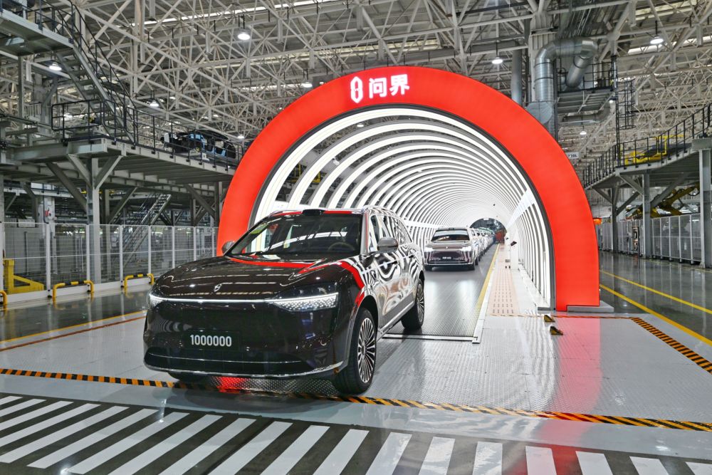 2026年1月13日,在位于重慶兩江新區(qū)的賽力斯超級(jí)工廠,第100萬(wàn)輛問(wèn)界新能源汽車下線。新華社發(fā)(王加喜攝)