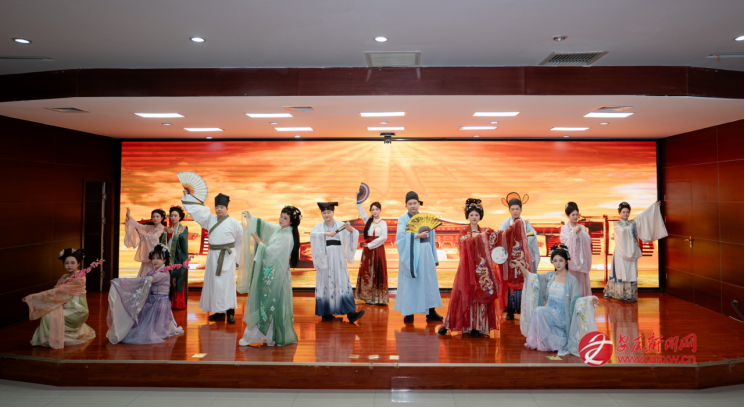 花枝映雅韻,羅衣展風(fēng)姿。活動(dòng)現(xiàn)場,女員工們褪去職業(yè)裝,換上襦裙、曲裾等各式漢服,簪花綰發(fā)、輕搖團(tuán)扇,一顰一笑間皆是溫婉雅致。伴隨著悠揚(yáng)的古樂,一場精心編排的漢服秀驚艷開場,女職工代表緩步登臺,或頷首低眉、或淺笑嫣然,在詩詞誦讀的映襯下,將中華傳統(tǒng)服飾的典雅之美演繹得淋漓盡致。“巾幗不讓須眉,須眉亦懷雅意”,更令人驚喜的是,四位男士代表身著儒巾青衫現(xiàn)身助陣,平日里雷厲風(fēng)行的他們,化身謙謙君子,步履從容間盡顯儒雅風(fēng)范,現(xiàn)場掌聲與歡笑聲此起彼伏。
