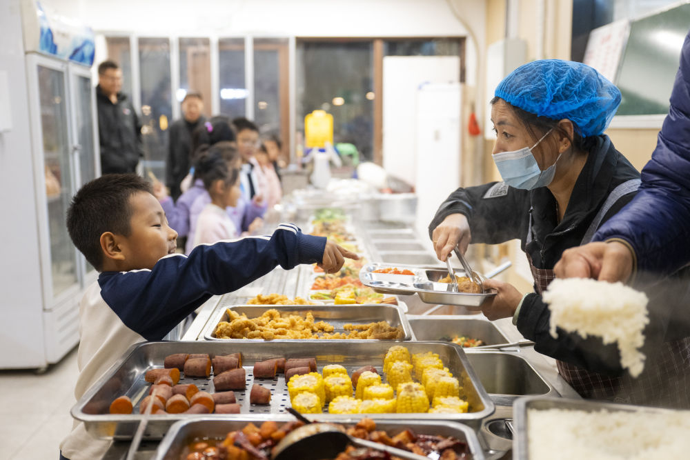 2025年11月25日,放學(xué)的小朋友在雄安新區(qū)容東片區(qū)春明北社區(qū)食堂內(nèi)用餐。春明北社區(qū)食堂每天傍晚為周邊學(xué)生提供營(yíng)養(yǎng)實(shí)惠的晚餐,有效減輕雙職工家庭負(fù)擔(dān)。