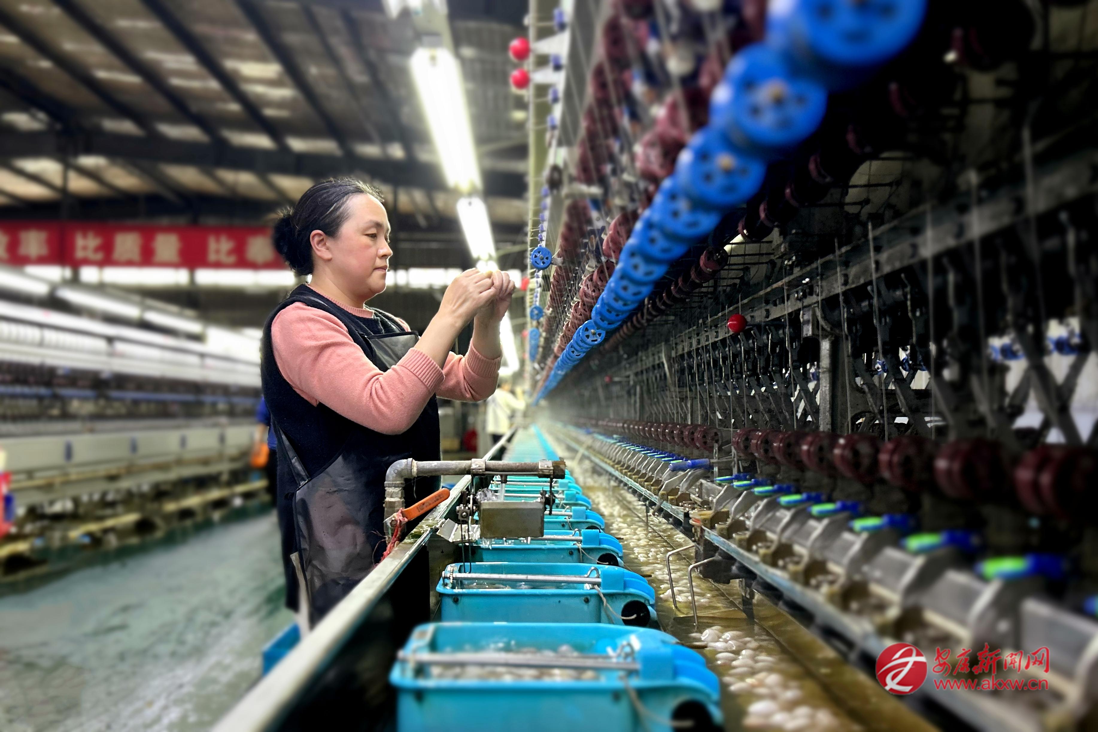 “今年國內(nèi)高端家紡市場需求旺盛,訂單一直很充足?!逼髽I(yè)負(fù)責(zé)人孫浩勇介紹,依托本地優(yōu)質(zhì)蠶繭,企業(yè)滿負(fù)荷生產(chǎn)。同時(shí),通過“企業(yè)+合作社+農(nóng)戶”利益聯(lián)結(jié)機(jī)制,天成絲業(yè)與數(shù)千戶蠶農(nóng)簽訂保底收購協(xié)議,提供全流程服務(wù),實(shí)現(xiàn)企業(yè)增效、蠶農(nóng)增收。