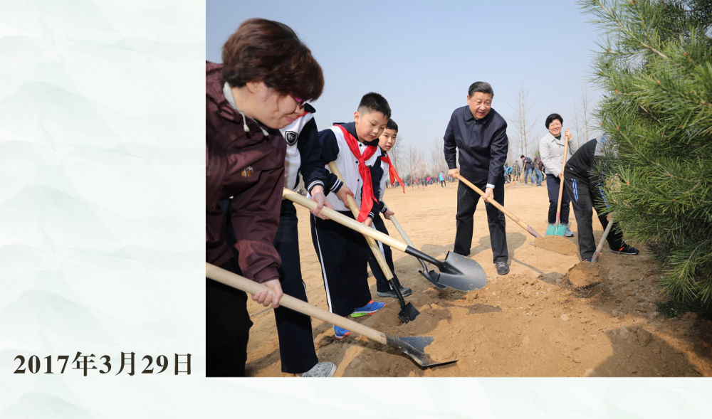3月30日,習(xí)近平等黨和國(guó)家領(lǐng)導(dǎo)人來到北京市昌平區(qū)百善鎮(zhèn)參加首都義務(wù)植樹活動(dòng)。