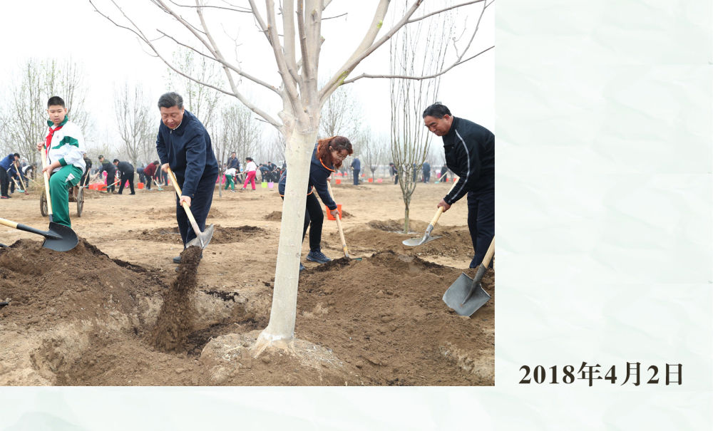 這是習(xí)近平總書記同大家一起植樹。