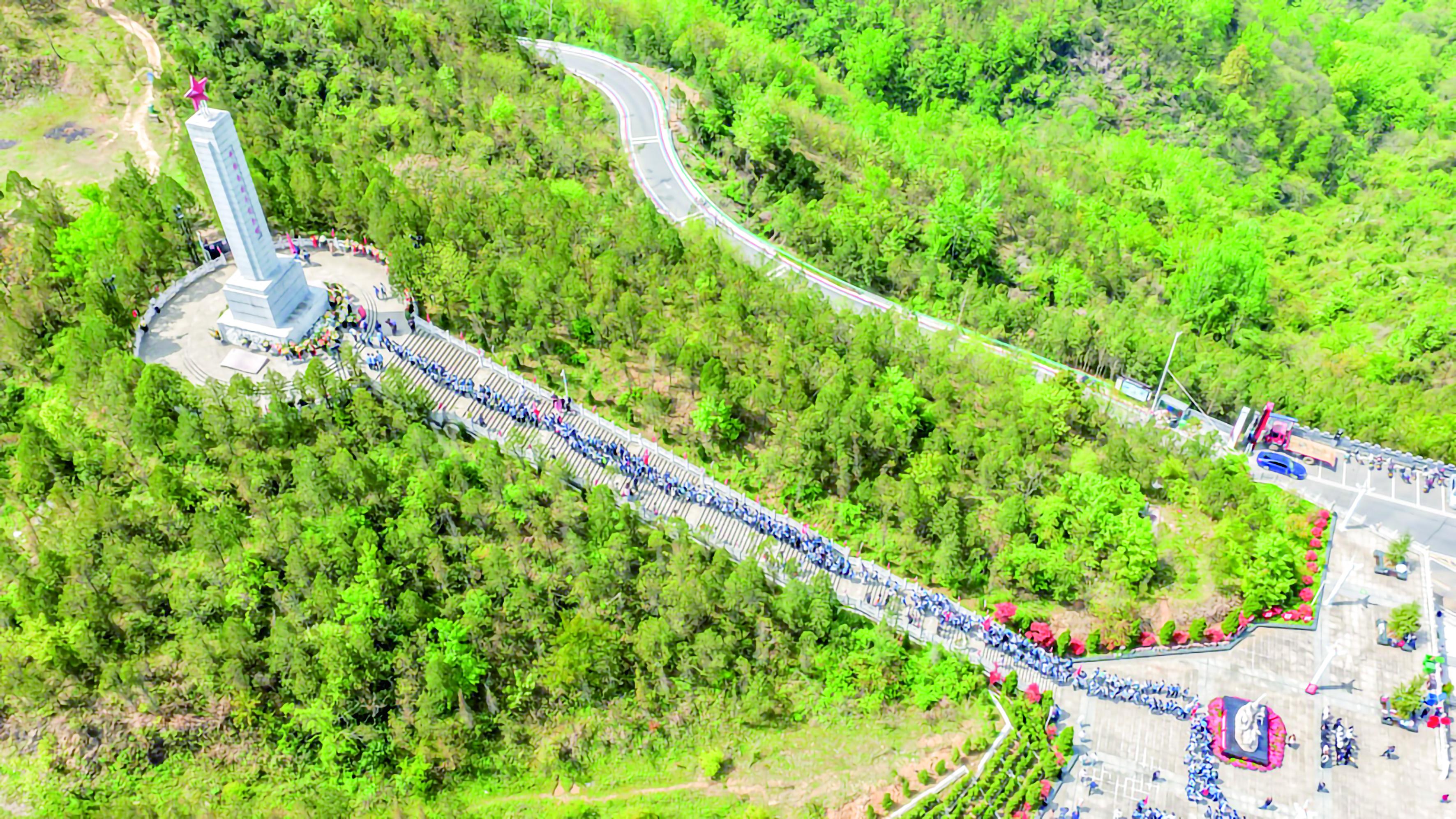 ▼ 4月3日,江北高級(jí)中學(xué)、安康中學(xué)初中部等5所學(xué)校的3000余名師生徒步赴牛蹄嶺開(kāi)展清明祭奠烈士活動(dòng)。 皮勇維 攝