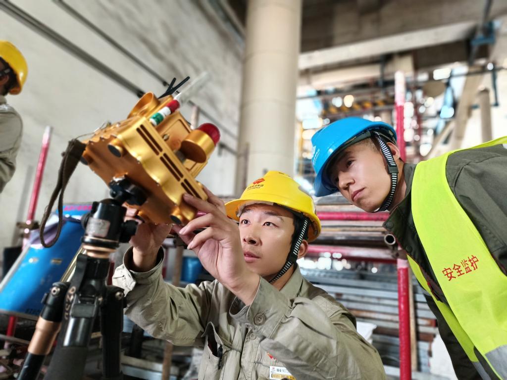 2024年4月23日,中國核電工程有限公司的企業(yè)導(dǎo)師和項目負責人現(xiàn)場指導(dǎo)朱澳(左一)。(李海萁 攝)
