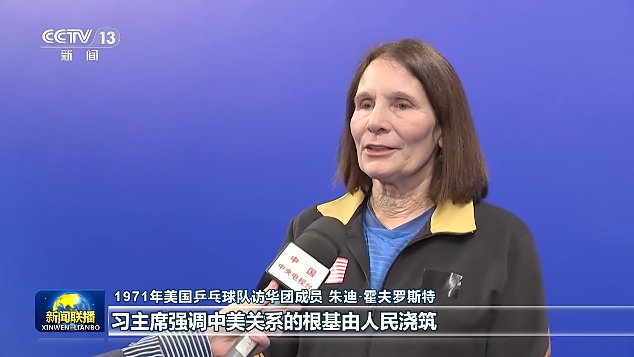 1971年美國乒乓球隊(duì)訪華團(tuán)成員 朱迪·霍夫羅斯特:習(xí)主席強(qiáng)調(diào)中美關(guān)系的根基由人民澆筑,這一點(diǎn)我深有感觸。在當(dāng)下,相互理解與對話比任何時候都更加重要,我也希望我們能將“乒乓外交”精神繼續(xù)傳承,在兩國人民間傳遞溫情,增進(jìn)理解。