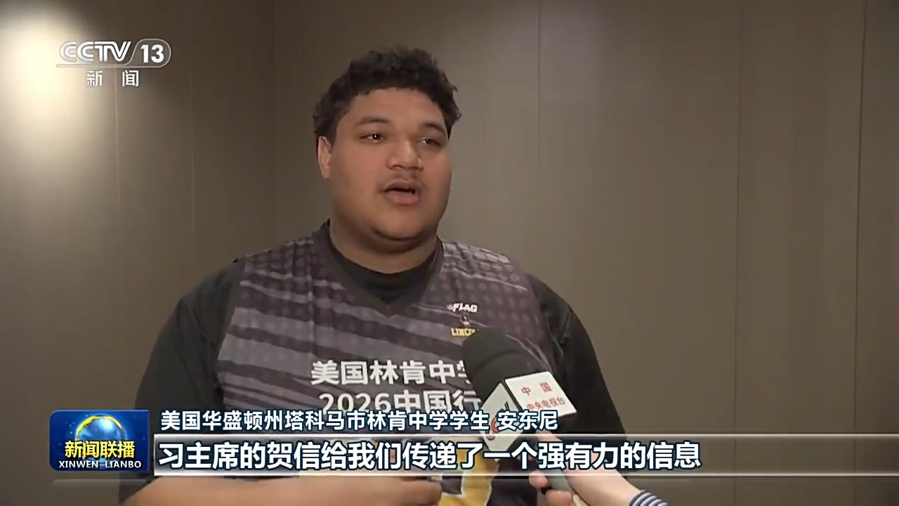 美國華盛頓州塔科馬市林肯中學(xué)學(xué)生 安東尼:習(xí)主席的賀信給我們傳遞了一個強(qiáng)有力的信息,讓我們堅(jiān)信彼此學(xué)習(xí)、相互理解就能讓人心貼得更近。我要把我親身體驗(yàn)所經(jīng)歷的一切,把我看到的真實(shí)的、充滿活力的中國,講給我家鄉(xiāng)的朋友們聽。