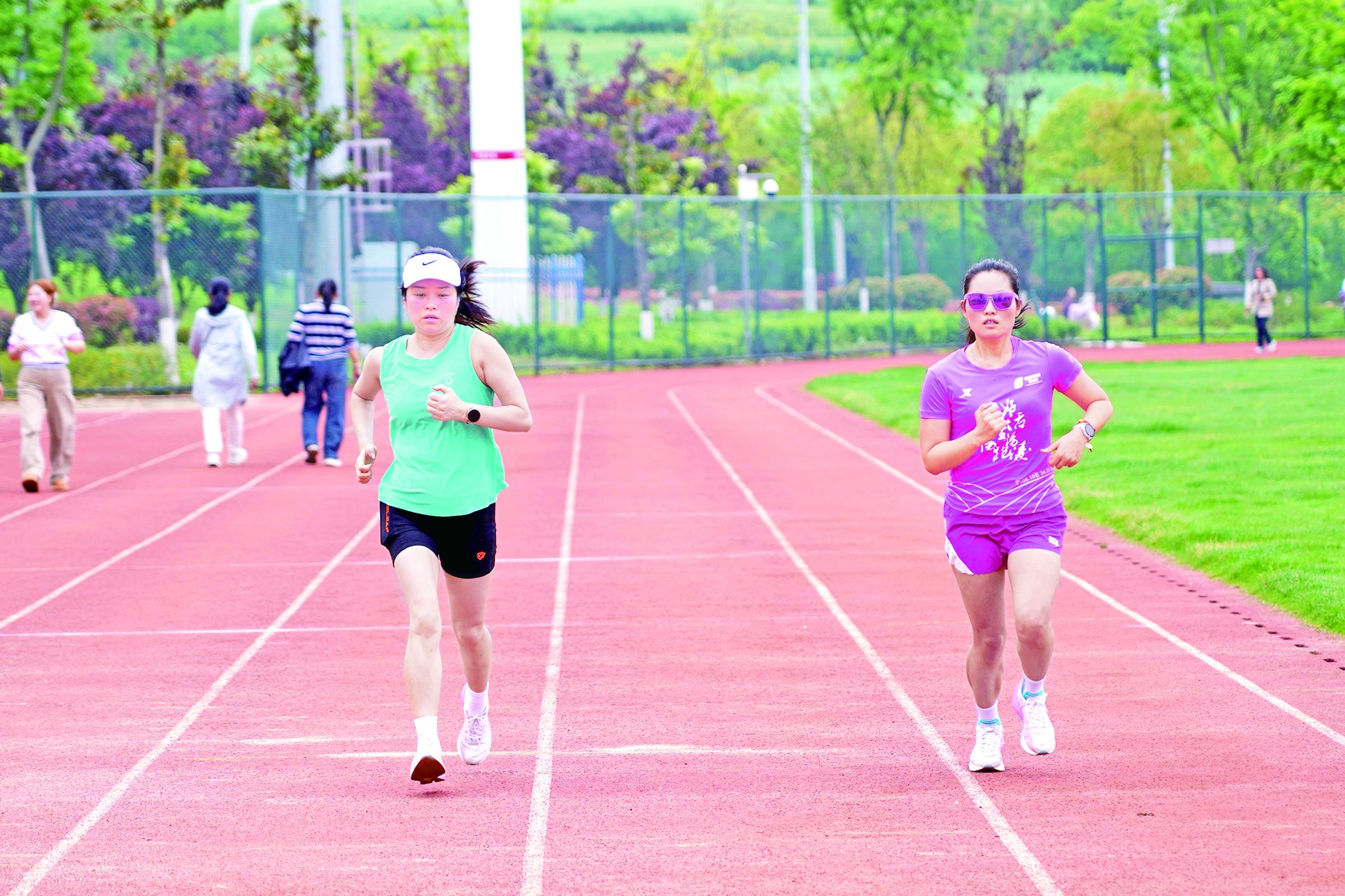 市民在市體育館田徑場跑步鍛煉。 范旭 攝