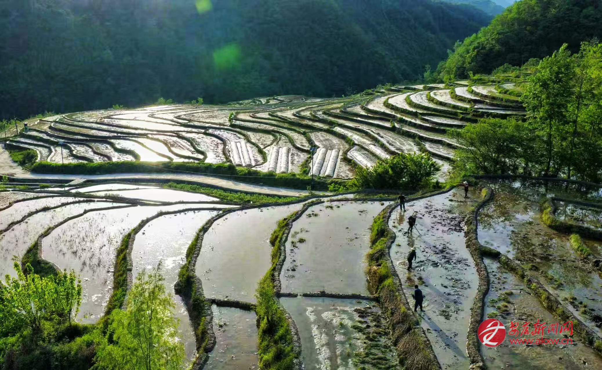 4月23日,嵐皋縣官元鎮(zhèn)古家村村民搶抓農(nóng)時(shí),對2000余畝古水田進(jìn)行深翻灌溉,為下一步插秧做好準(zhǔn)備。 邱仕君 攝