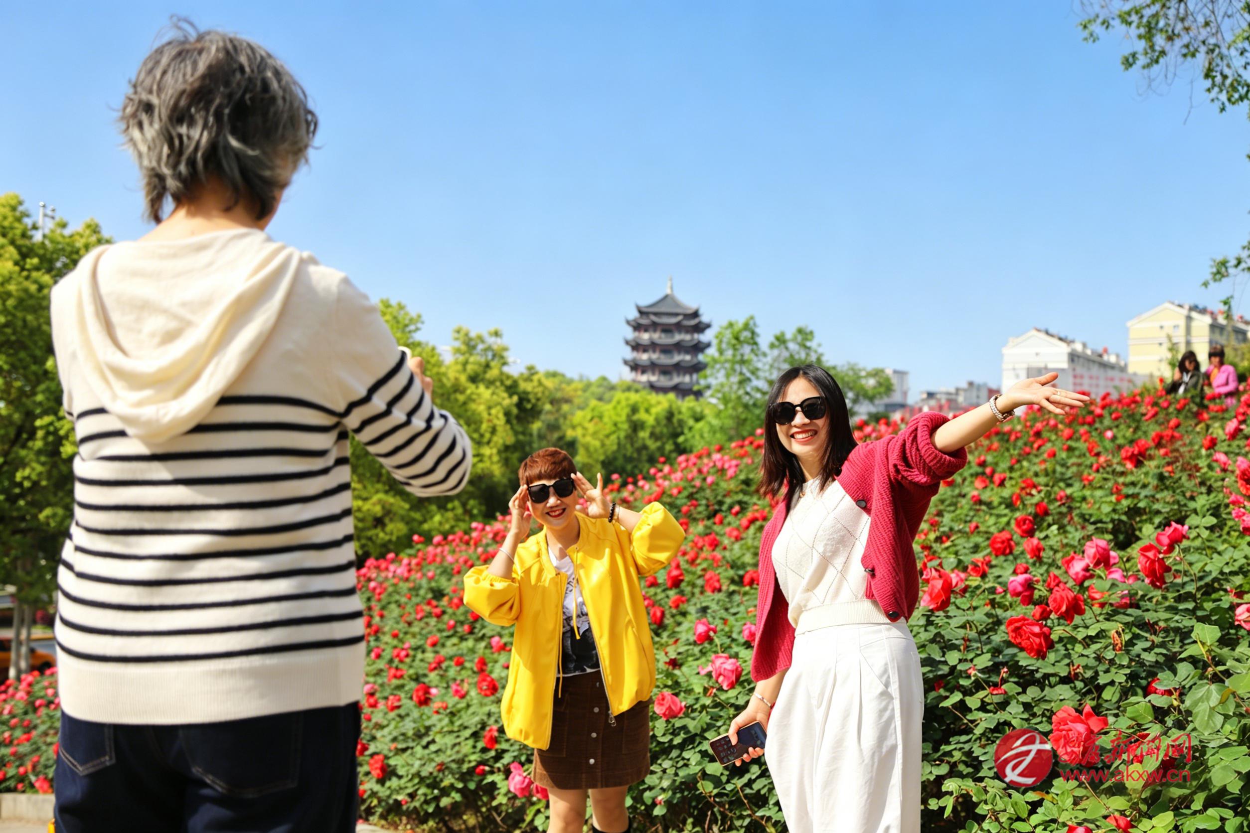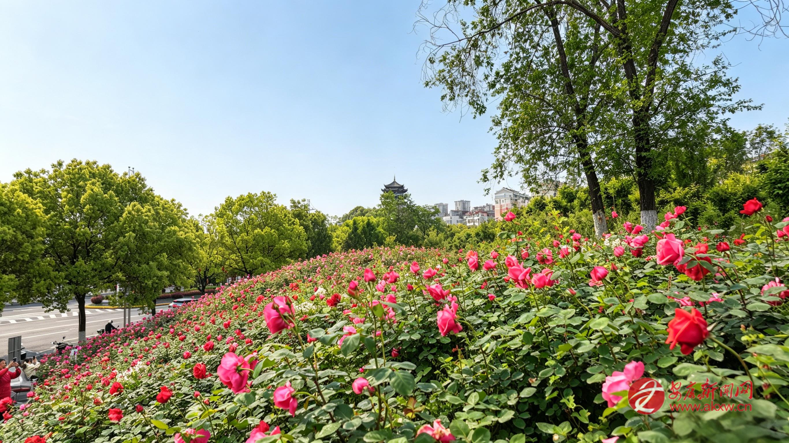 從金川門到西津漢江大橋的漢江堤岸上,月季長(zhǎng)廊如約綻放,紅似火、粉如霞,將濱江步道裝點(diǎn)得如詩如畫。市民和游客徜徉其間,與繁花合影,與江風(fēng)相擁,盡情享受春日的愜意時(shí)光。