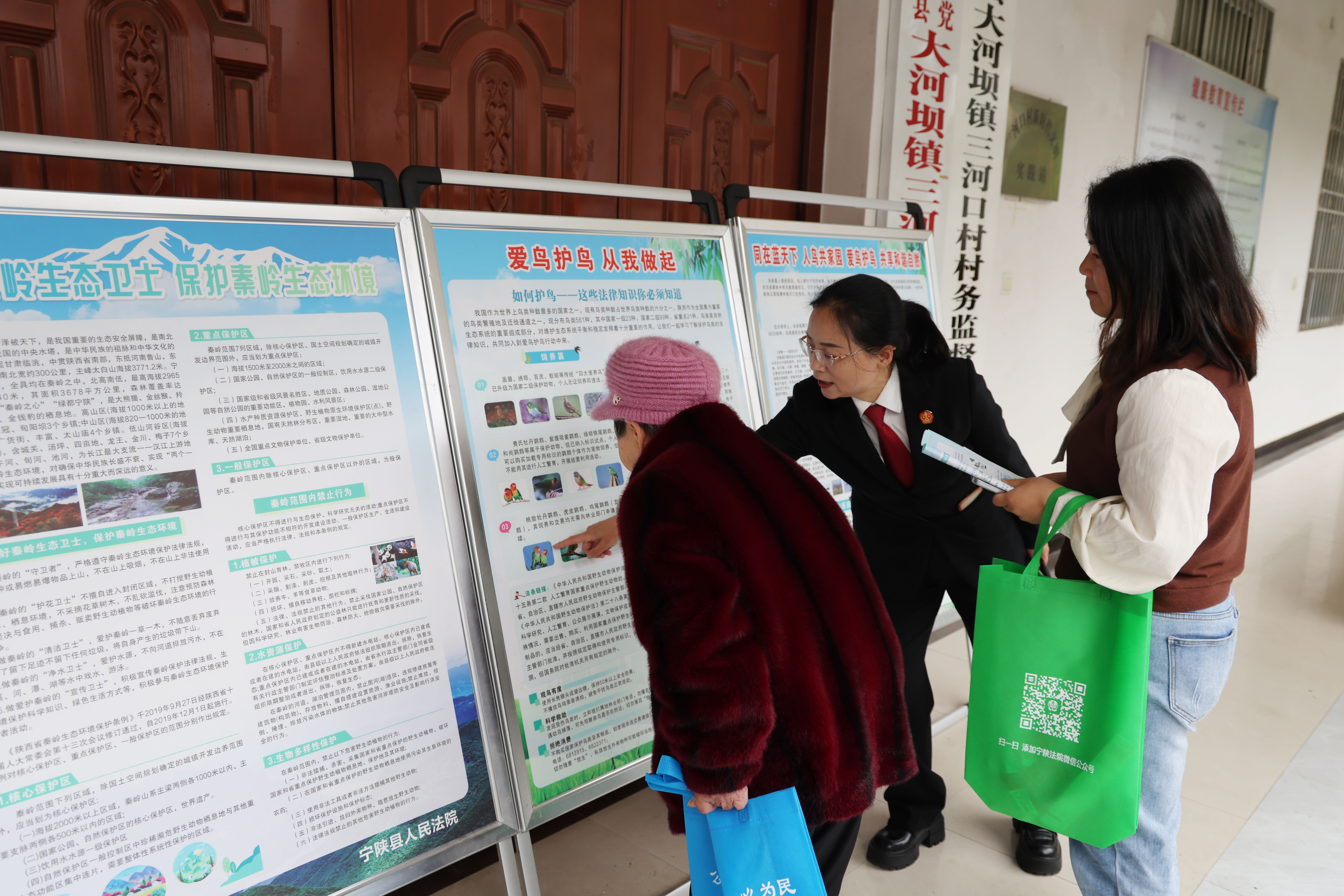 在佛坪縣大河壩鎮(zhèn)三河口村,兩地法院干警結(jié)合轄區(qū)群眾生產(chǎn)生活實際,用通俗易懂的語言,面向群眾精準(zhǔn)解讀《中華人民共和國生態(tài)環(huán)境法典》《陜西省秦嶺生態(tài)環(huán)境保護(hù)條例》等核心法律法規(guī)。同時,聚焦非法捕撈水產(chǎn)品、違規(guī)穿越秦嶺核心保護(hù)區(qū)、破壞水源地環(huán)境等頻發(fā)違法情形,依托本地典型案例,深入淺出剖析各類生態(tài)環(huán)境違法行為的法律責(zé)任與生態(tài)危害,以“身邊案例”警醒“身邊群眾”,清晰劃定秦嶺生態(tài)保護(hù)法律紅線,引導(dǎo)群眾自覺遵守環(huán)保法律法規(guī),主動抵制各類破壞秦嶺生態(tài)的違法違規(guī)行為?;顒又校皆O(shè)置趣味環(huán)保知識有獎問答環(huán)節(jié)。群眾踴躍舉手、積極互動,在輕松鮮活的氛圍中加深生態(tài)保護(hù)知識記憶,進(jìn)一步夯實全民共同守護(hù)秦嶺、保護(hù)水源地的思想根基,切實提升群眾生態(tài)保護(hù)意識、法治觀念和行動自覺。