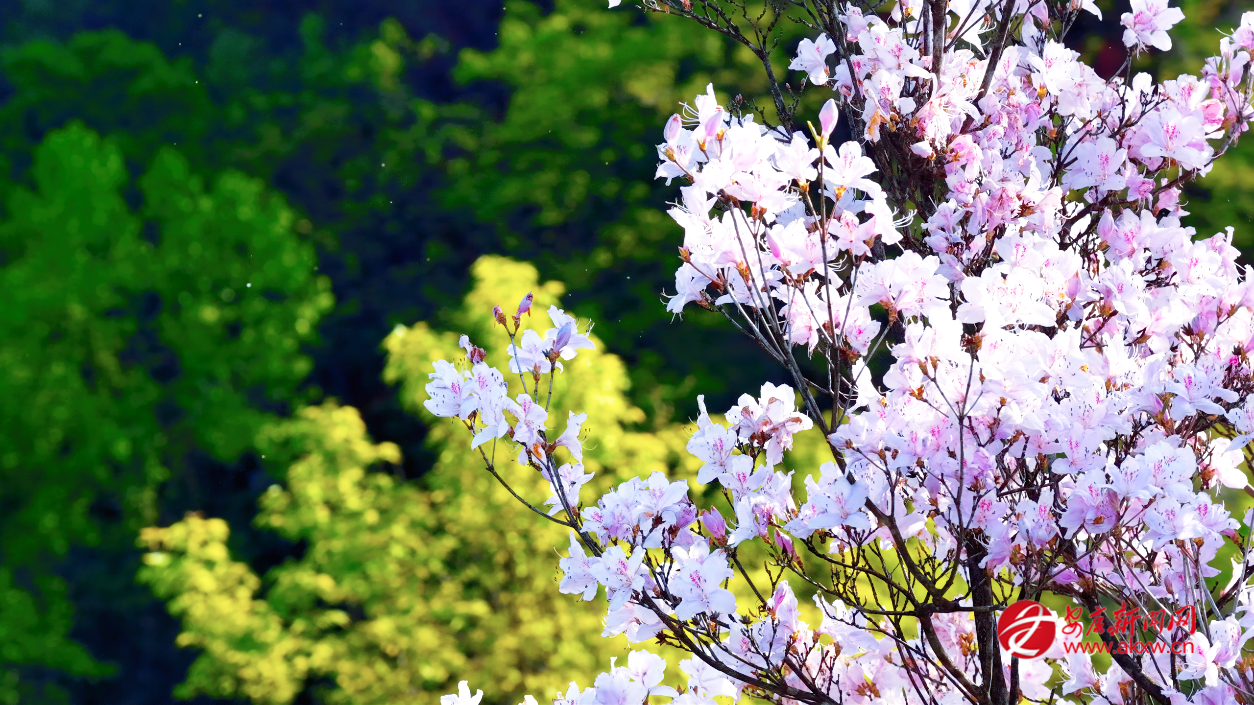 枝頭繁花,簇簇相擁,漏斗狀的花冠舒展綻放,藏著秦嶺深處最熱烈的春意。青巒為底,繁花為墨,云霧為紗,百年蒼松點(diǎn)綴其間,勾勒出一幅絕美的山水丹青。