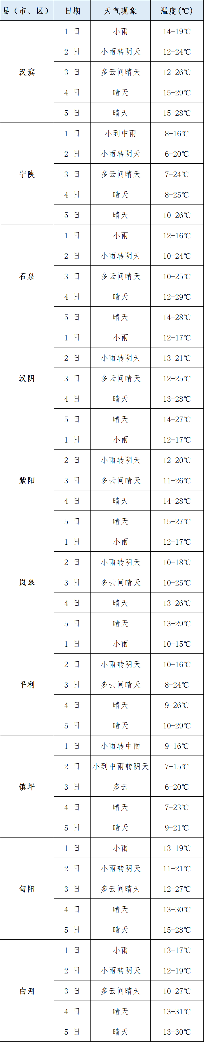 一、“五一”假期安康天氣預(yù)報(bào)