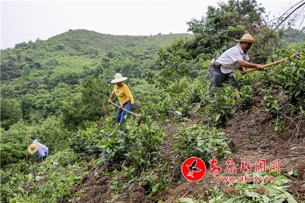 在橋河林場(chǎng),一株株茶樹深深地扎根在60度的山坡上,這是上世紀(jì)70年代種植的老茶園,漢濱區(qū)德潤(rùn)天然富硒農(nóng)產(chǎn)品開發(fā)有限公司的王彪正帶領(lǐng)茶農(nóng)們?cè)谛拚,將建成?biāo)準(zhǔn)化的示范茶園。不同于和農(nóng)戶逐個(gè)簽訂土地流轉(zhuǎn)合同,德潤(rùn)公司直接與橋河村簽訂協(xié)議,把撂荒的3000畝林場(chǎng)土地全都承包下來。SkJ安康新聞網(wǎng)