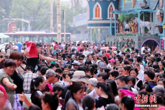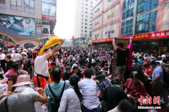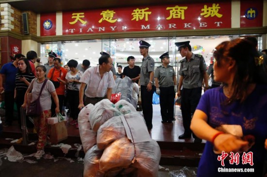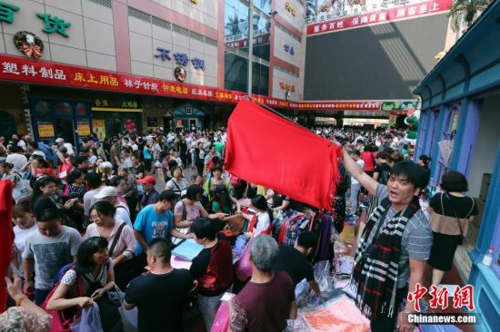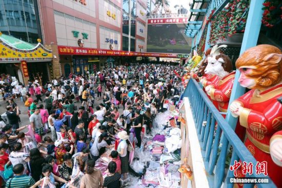 9月15日,商戶聚集在北京天意商城門口甩賣商品,吸引大批顧客搶購。天意商城是北京規(guī)模最大的小商品批發(fā)兼零售市場,為疏解北京非首都功能,天意商城將于9月16日關(guān)門停業(yè)。中新社記者 盛佳鵬 攝JgP安康新聞網(wǎng)