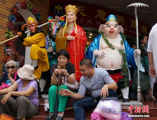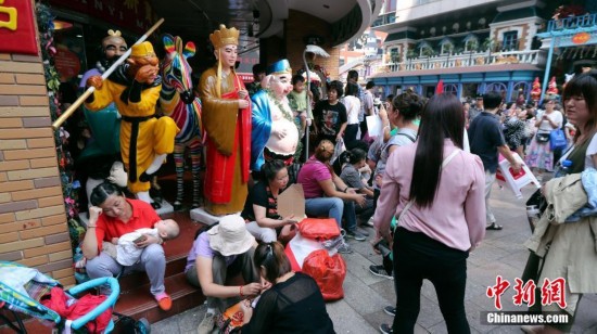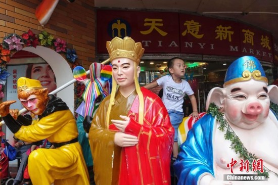 9月15日,一孩童坐在天意門前西游記師徒雕像上遠(yuǎn)眺。當(dāng)日,自1992年開業(yè)至今的北京天意市場迎來其在北京西城阜外大街營業(yè)的最后一日,商家趁機(jī)“瘋狂甩貨”,大批北京民眾也紛至沓來。這里曾是北京著名的小商品商城,聚集了數(shù)千家商戶。為疏解北京非首都功能,天意商城將于本月16日關(guān)門停業(yè)。中新社記者 崔楠 攝JgP安康新聞網(wǎng)