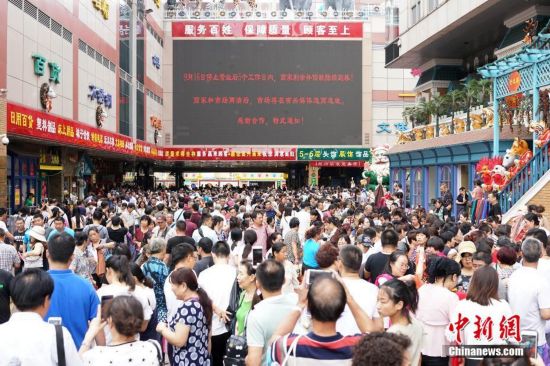 9月15日,市民齊聚天意批發(fā)市場中購物。天意商城是北京規(guī)模最大的小商品批發(fā)兼零售市場,為疏解北京非首都功能,天意商城將于本月16日關(guān)門停業(yè)。中新社記者 韓海丹 攝JgP安康新聞網(wǎng)