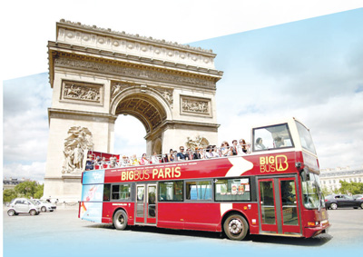 在法國巴黎,一輛觀光巴士經(jīng)過凱旋門。J2n安康新聞網(wǎng)