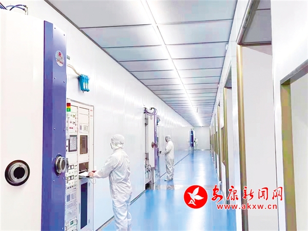 陜西軒意光電科技有限公司工作人員巡查生產(chǎn)情況。