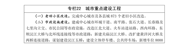 鐵路。建設(shè)西安至安康至重慶高鐵。謀劃研究通達(dá)漢中、十堰、張家界、成都的高速鐵路。推動(dòng)西康線“綠巨人”動(dòng)車組向漢中、達(dá)州、十堰方向延伸。加強(qiáng)安康東站貨運(yùn)編組站建設(shè),發(fā)揮區(qū)域綜合性貨運(yùn)樞紐功能。