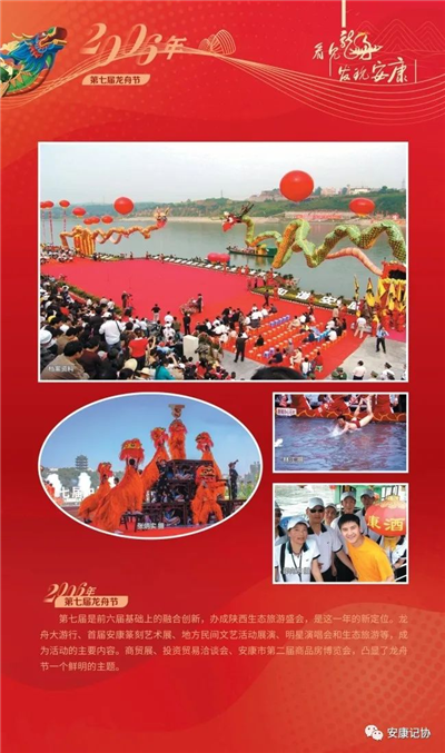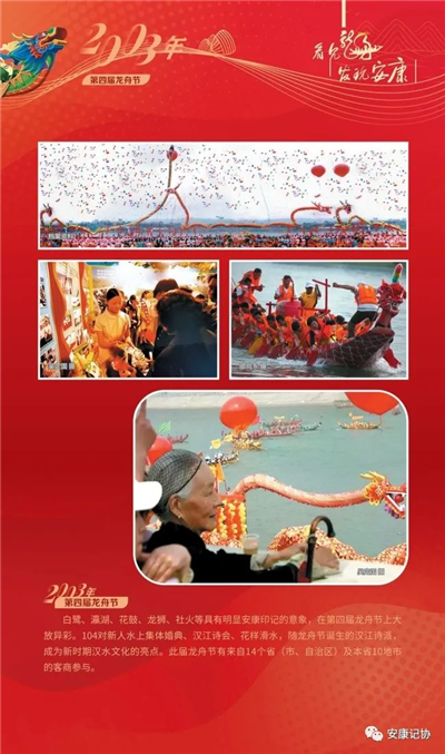 每一個珍貴的瞬間,都是安康社會發(fā)展的典藏。安康漢江龍舟競渡歷史悠久、源遠(yuǎn)流長。特別是進(jìn)入新世紀(jì)以來的2000年至今,“中國安康漢江龍舟節(jié)”已成功舉辦21屆,先后入選“中國十大魅力節(jié)慶”、中國體育類非物質(zhì)文化遺產(chǎn)保護(hù)與推廣項目,成為我市聚集人氣、繁榮文化、發(fā)展經(jīng)濟(jì)、擴(kuò)大開放的金色名片。