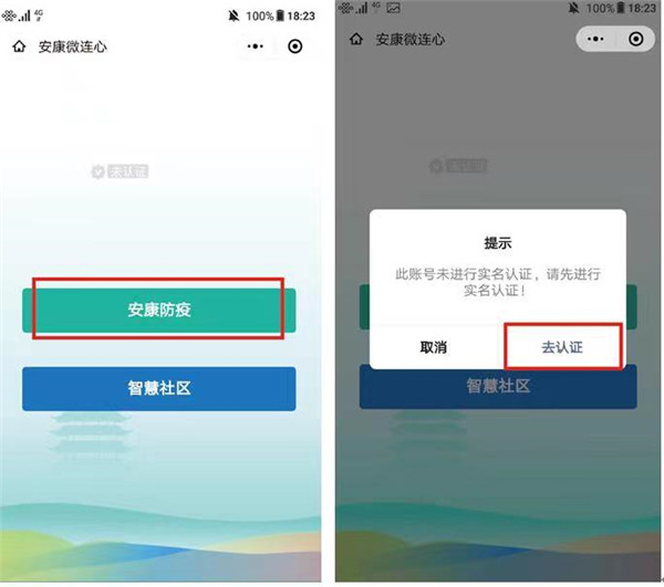 第一步,打開微信,搜索“安康微連心”小程序,點擊“安康防疫”,點擊“去認證”。