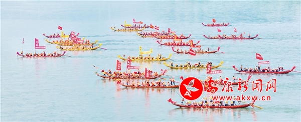 2021年,第二十一屆安康龍舟節(jié)開幕式上龍舟橫渡漢江。段福興 攝