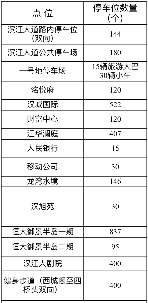 濱江大道沿線停車場開放信息表bn2安康新聞網(wǎng)